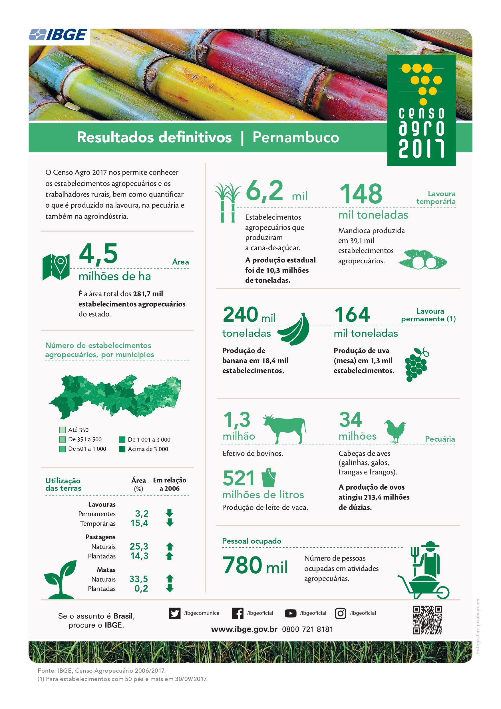 Abaixo temos dados estatísticos do Censo Agropecuário do IBGE que destaca a importância deste setor no estado de Pernambuco.: