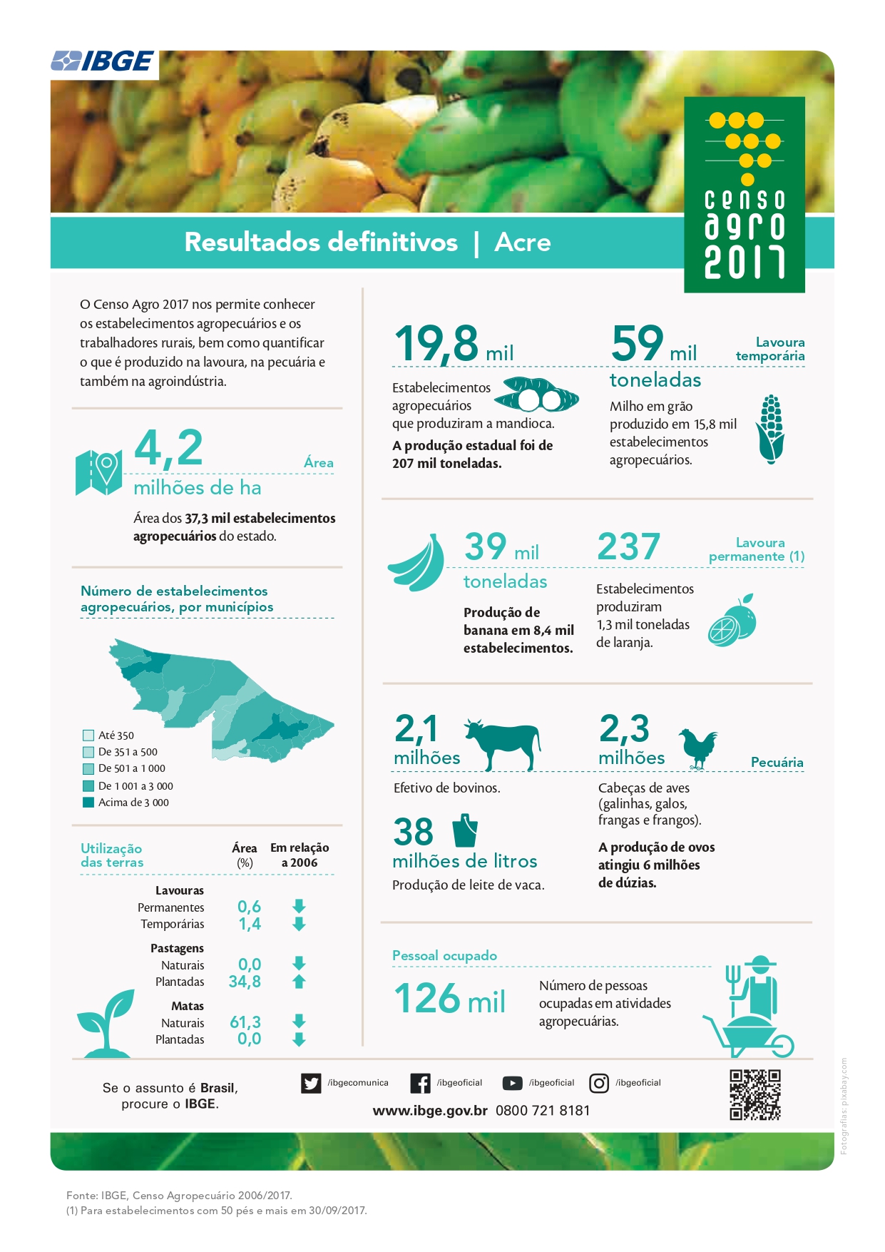 Abaixo temos dados estatísticos do Censo Agropecuário do IBGE que destaca a importância deste setor no estado do Acre.:
